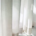 形状安定加工は、生地の織り密度や糸の太さなどからくる硬さや反発でカーテンが横方向に広がってしまうことを抑える加工です。薬品を使わない熱加工なので安心安全です。
